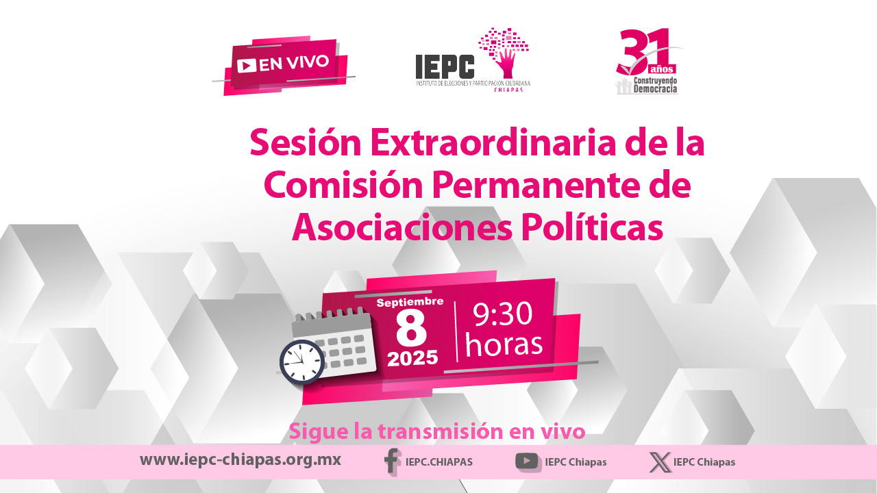 Sesión de la Comisión Permanente de Asociaciones Políticas, 8Sep2025 Sesión de la Comisión Permanente de Asociaciones Políticas5 de Septiembre de 2025 9:30 horas