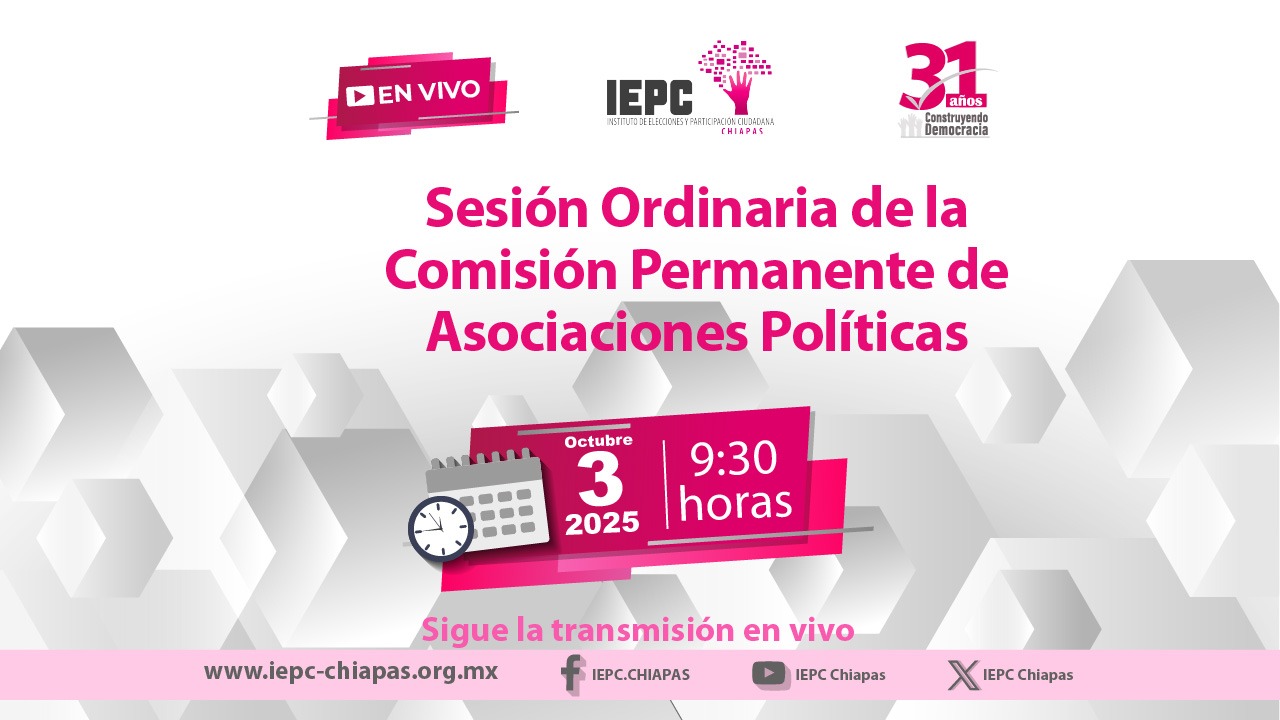 Sesión de la Comisión Permanente de Asociaciones Políticas, 03Oct2025 Sesión de la Comisión Permanente de Asociaciones Políticas03 de Octubre de 2025 09:30 horas