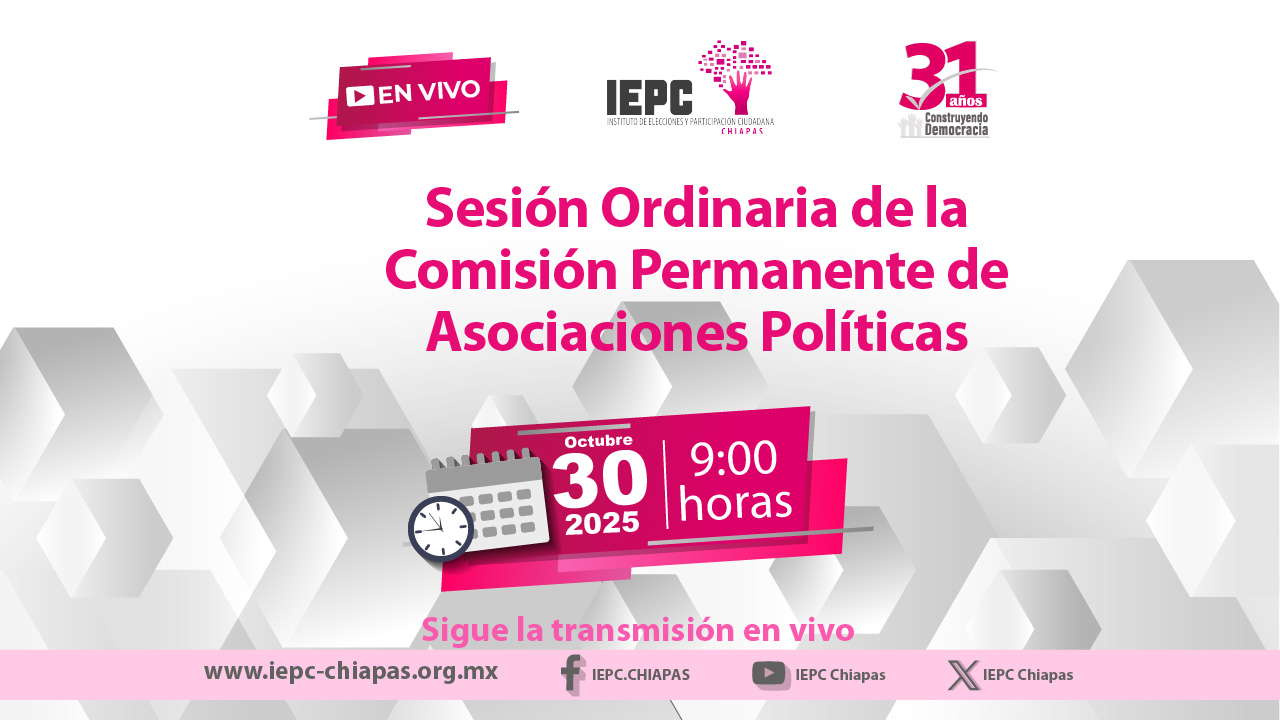 Sesión de la Comisión Permanente de Asociaciones Políticas, 30Oct2025 Sesión de la Comisión Permanente de Asociaciones Políticas30 de Octubre de 2025 9:00 horas