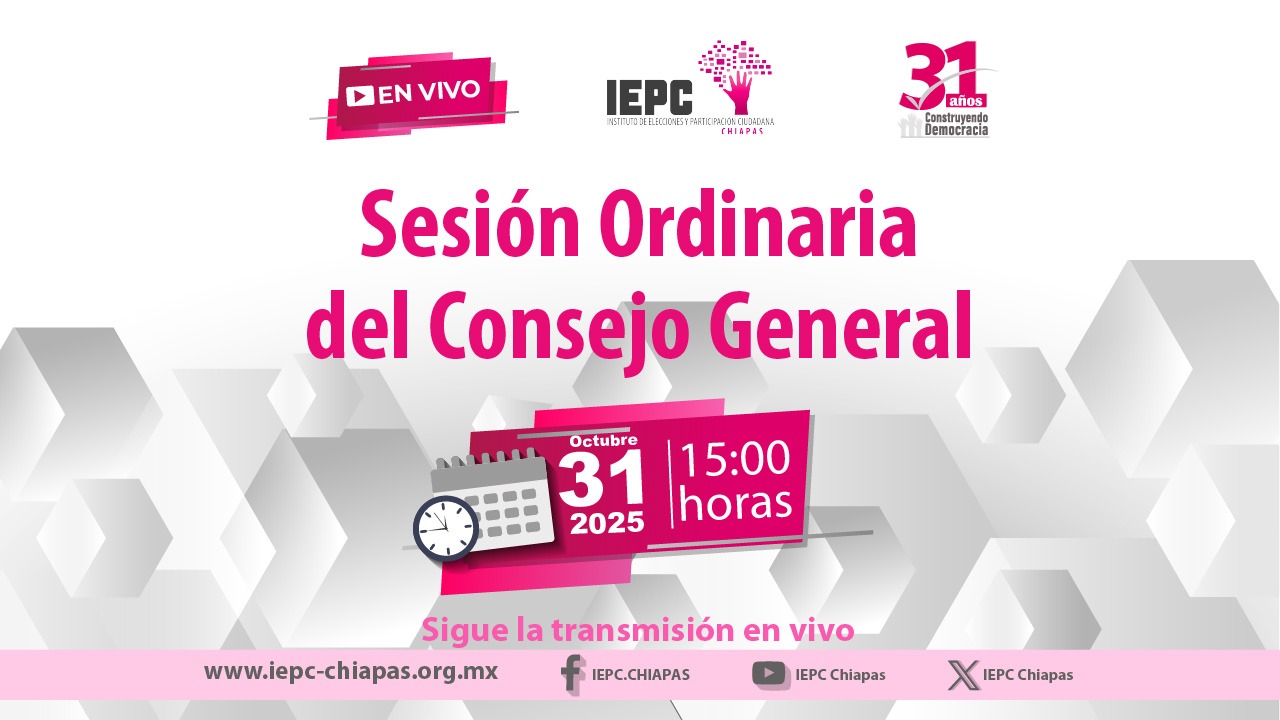 Sesión Ordinaria del Consejo General, 31Oct2025 Sesión Ordinaria del Consejo General31 de Octubre de 2025 15:00 horas