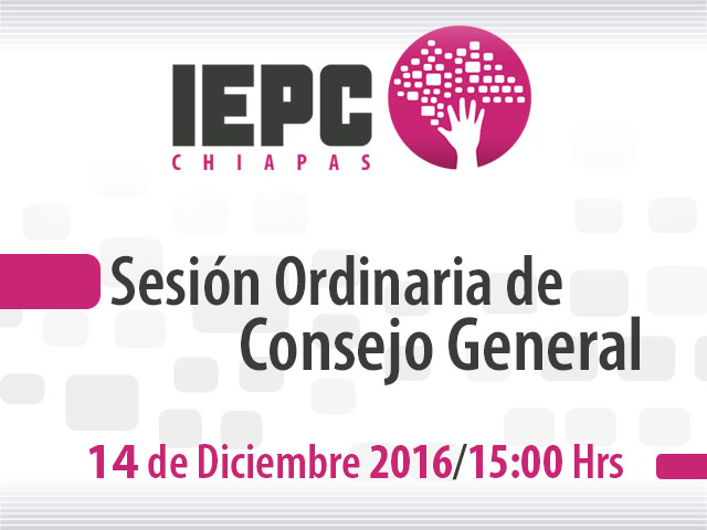 Sesión Ordinaria del Consejo General, Diciembre Sesión Ordinaria del Consejo General14 de Diciembre de 201615:00 horas
