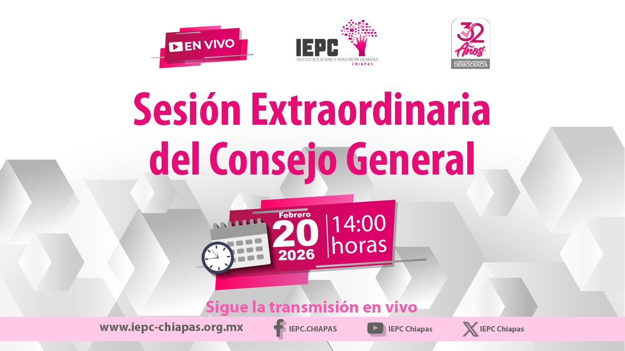 Sesión Extraordinaria del Consejo General, 20Feb2026 Sesión Extraordinaria del Consejo General20 de Febrero de 2026 14:00 horas